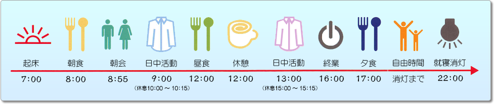 多機能事業所として、就業訓練・生産活動・創作的活動の機会の提供並びに入浴、食事、排泄等の介護、その他の便宜を適切かつ効果的に提供し、利用者個々の障害状況やニーズに対応して、個人が主体的にその人らしく過ごせる施設を目指します。